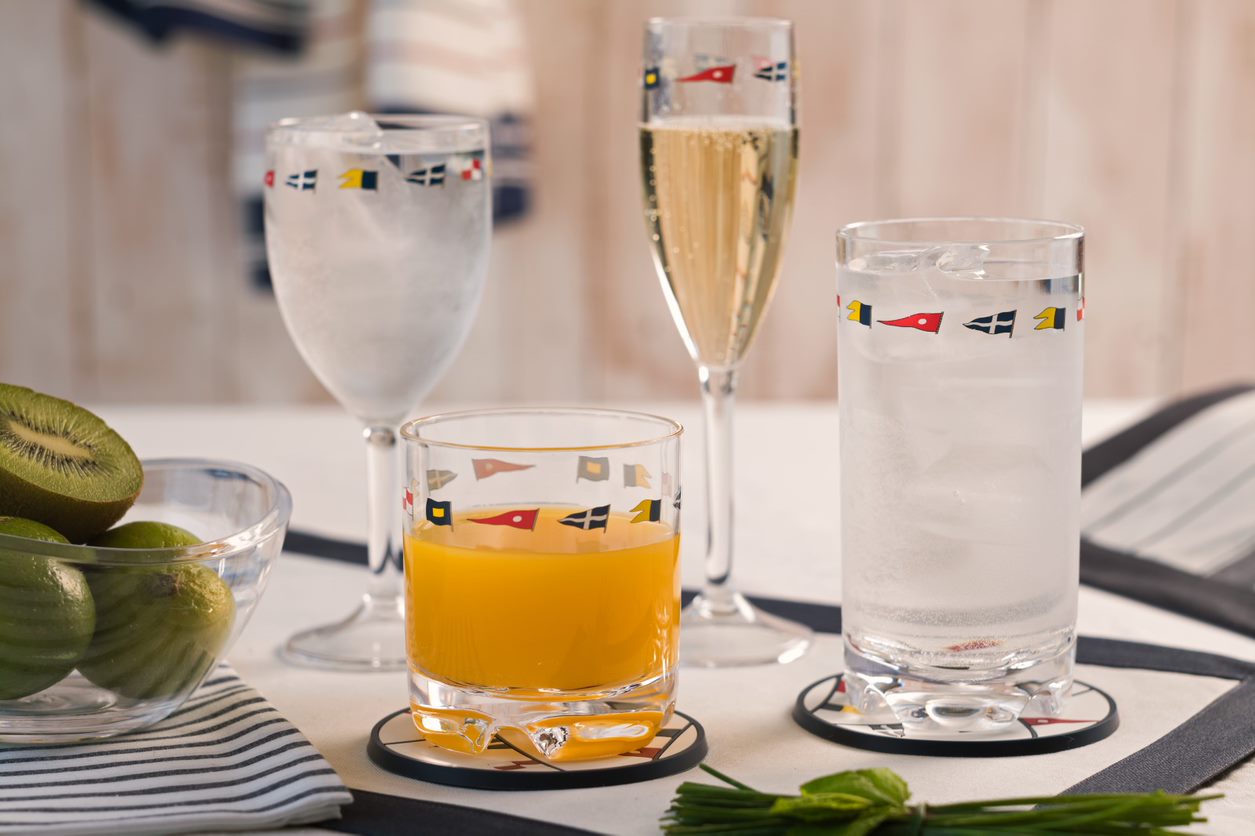 Completa la collezione di piatti in melamina REGATA con questi bicchieri infrangibili in una linea colorata e allegra.